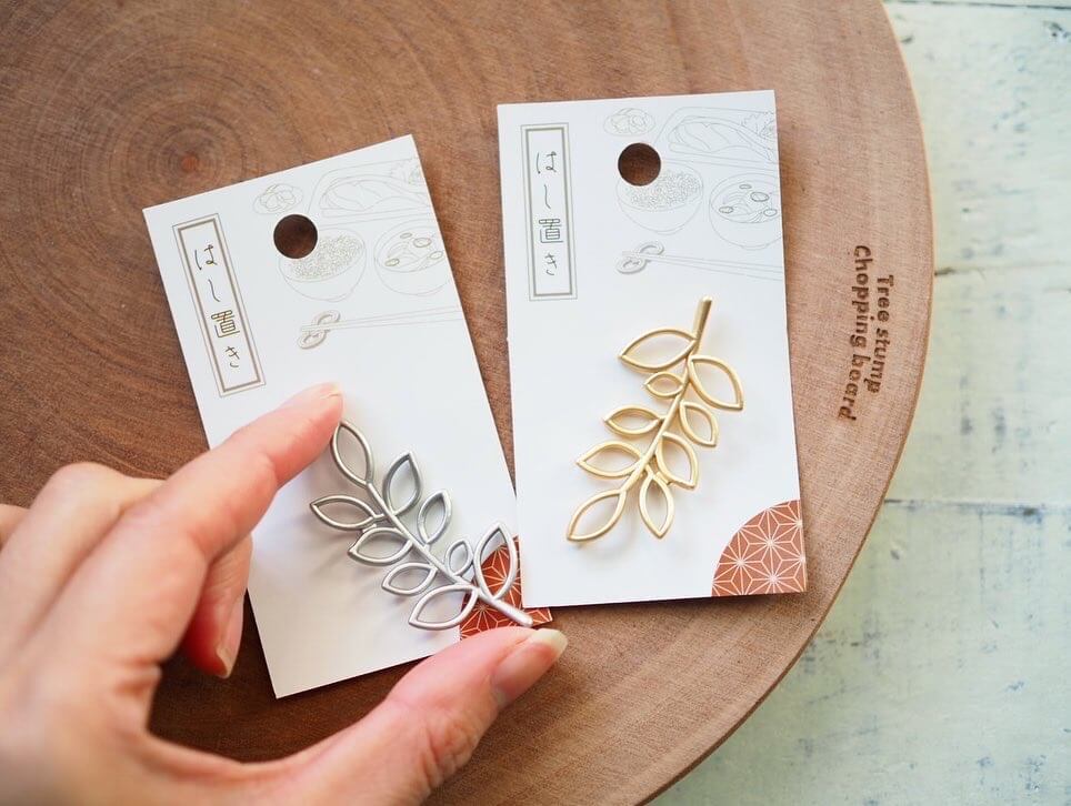 - はし置き リーフ(ゴールド/シルバー) 各110円(税込)