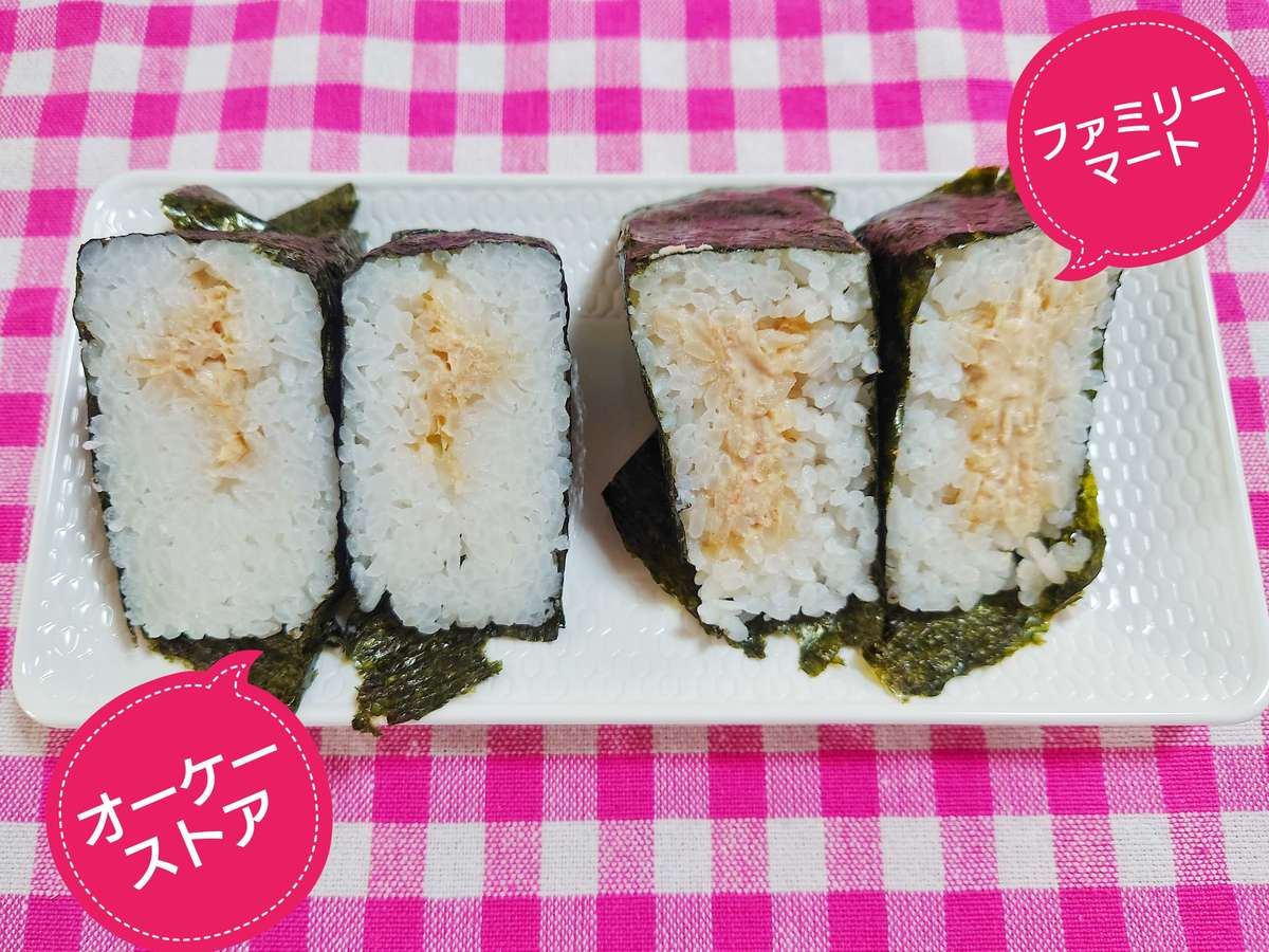 左がオーケーストア、右がファミリーマートのおにぎりです。