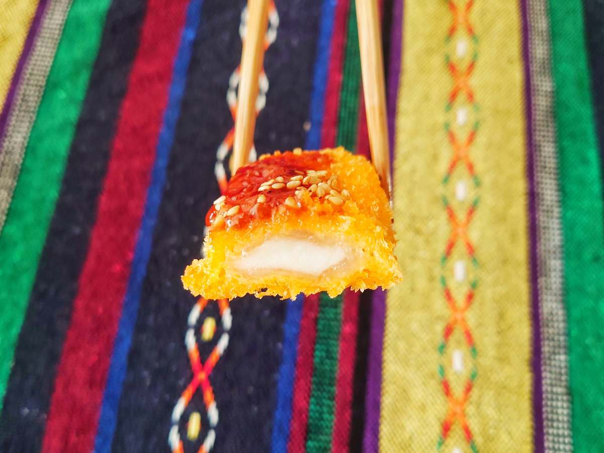 イカフライはごまソースがかかり、そのうえから白ごまもパラリ。