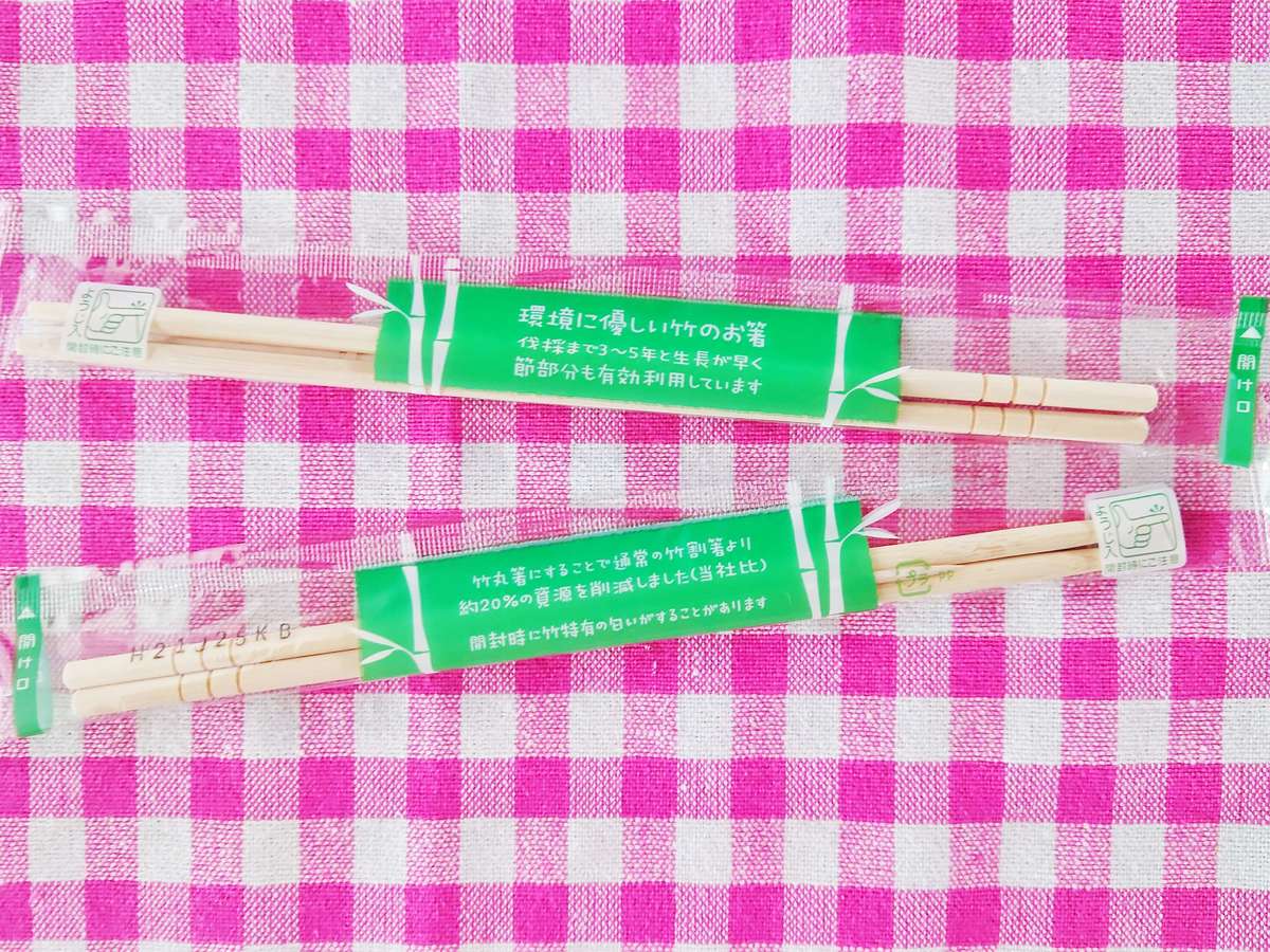 竹の箸で、節部分も無駄なく有効活用しているそうです。お弁当を食べていると、使い捨てとは思えない質の良さが分かります。洗ってまた使えるレベルの丈夫な箸でした。