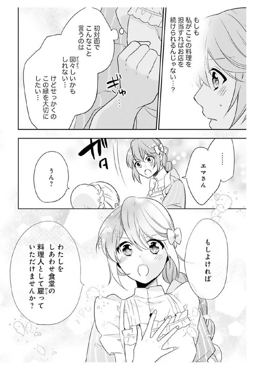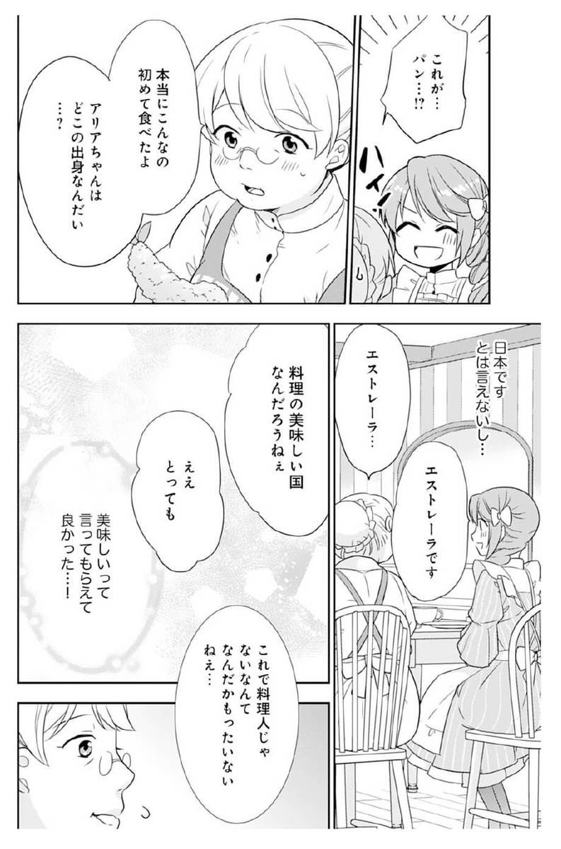 素性を隠しながらしばらく街で暮らすことにしたアリアは、ひょんなことから『しあわせ食堂』でシェフとして働くことに。アリアが作る日本食は人々の胃袋をがっしり掴み、食堂は瞬く間に行列のできる人気店へ。
