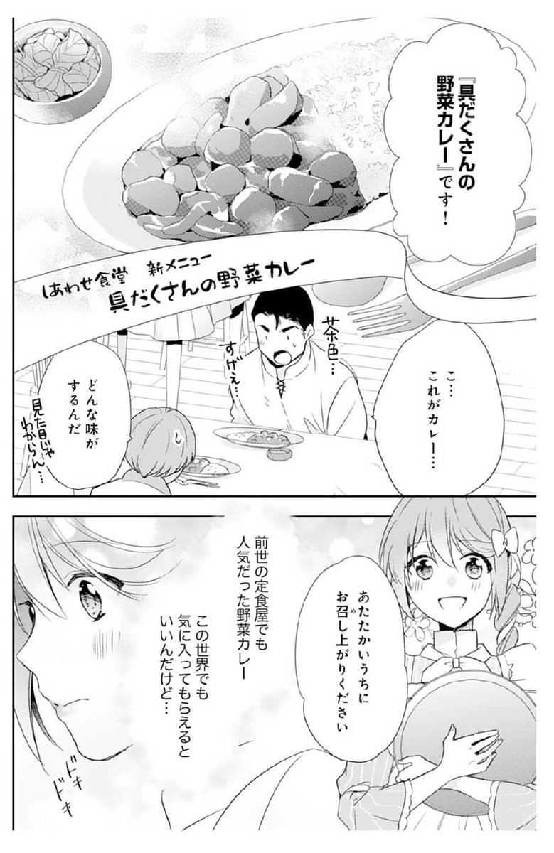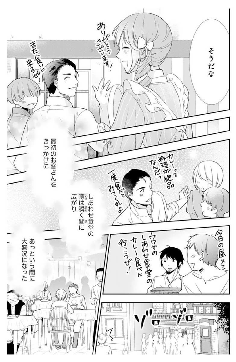 素性を隠しながらしばらく街で暮らすことにしたアリアは、ひょんなことから『しあわせ食堂』でシェフとして働くことに。アリアが作る日本食は人々の胃袋をがっしり掴み、食堂は瞬く間に行列のできる人気店へ。