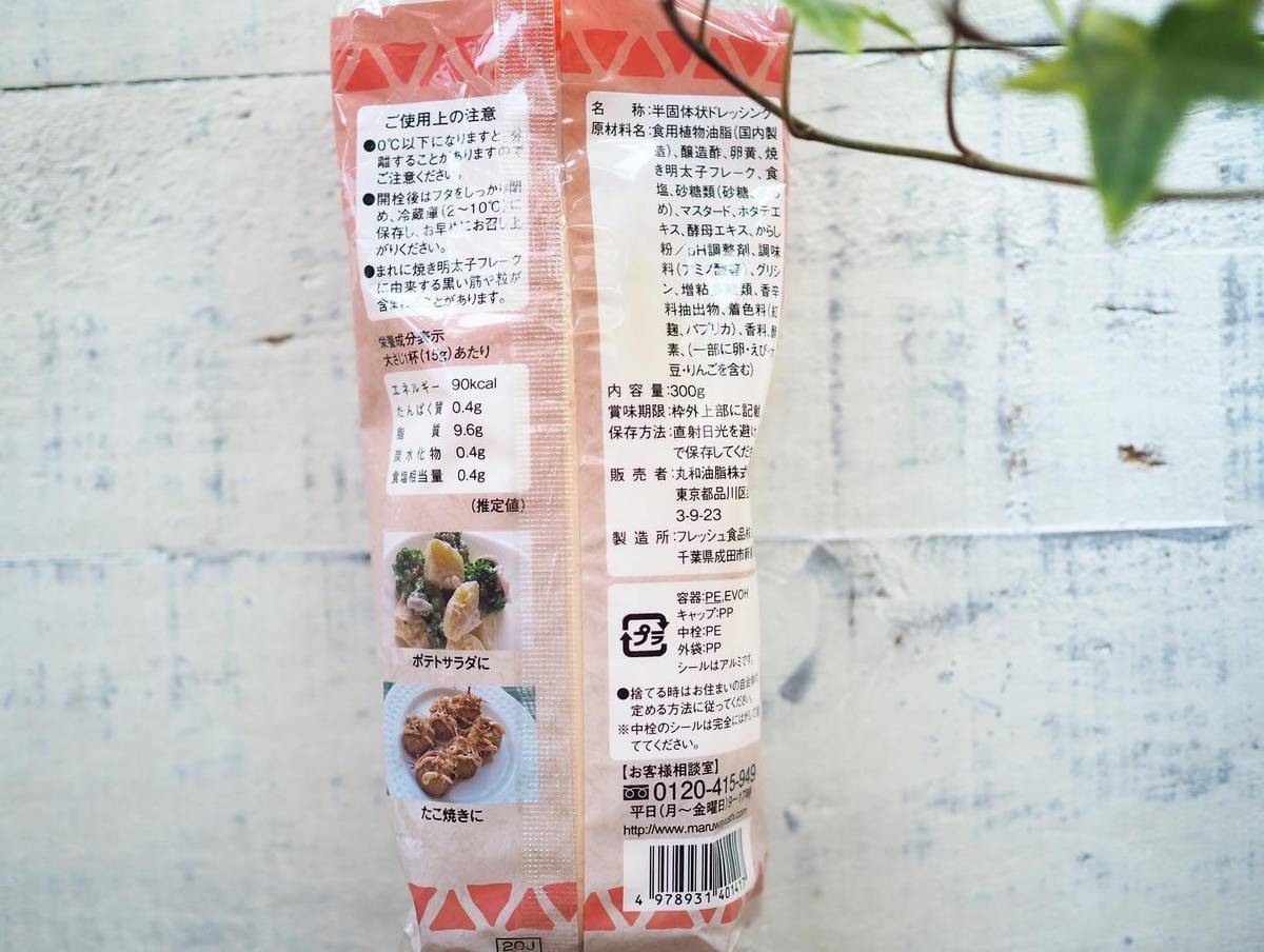 内容量は300mlで、マヨネーズに焼き明太子フレークが入っています。