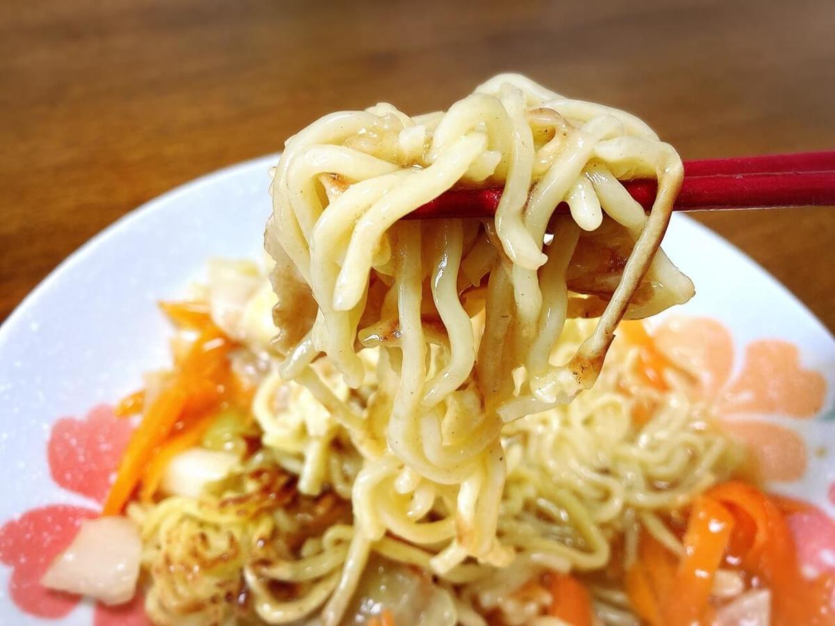 今回は中華麺を使いましたが、多分焼きそば麺ならもっとほぐれやすいし加熱し過ぎて焦げ目がつく心配もなさそうですね。