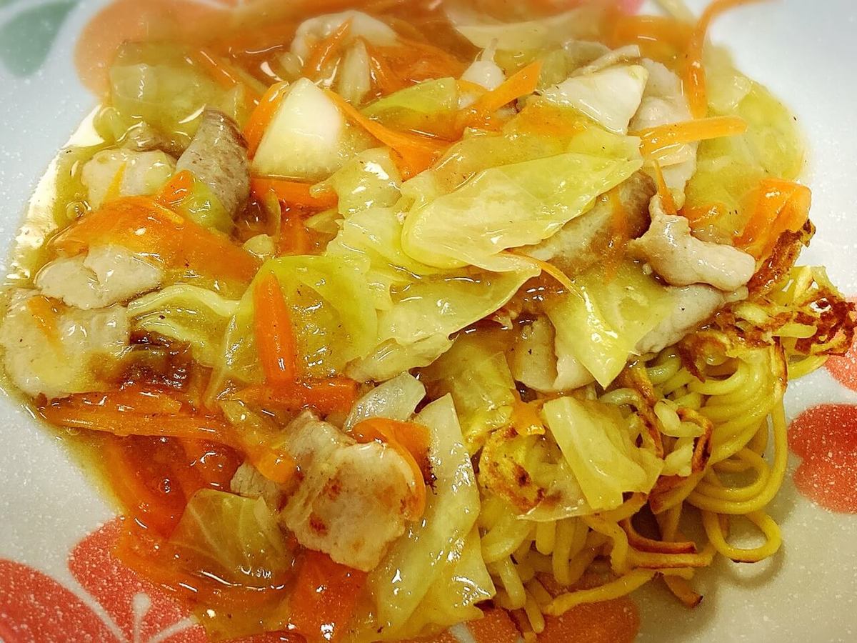 ⑦麺を皿に移し、上からあんかけをかけたら完成!