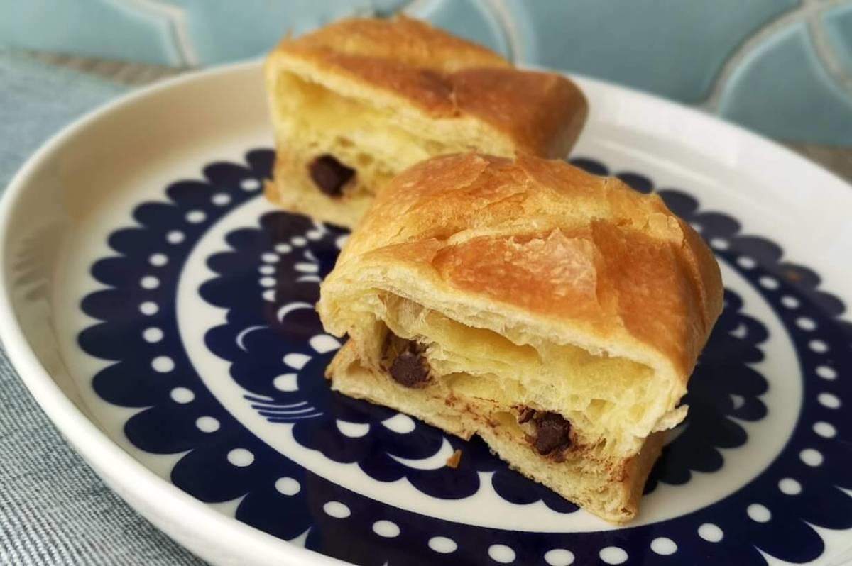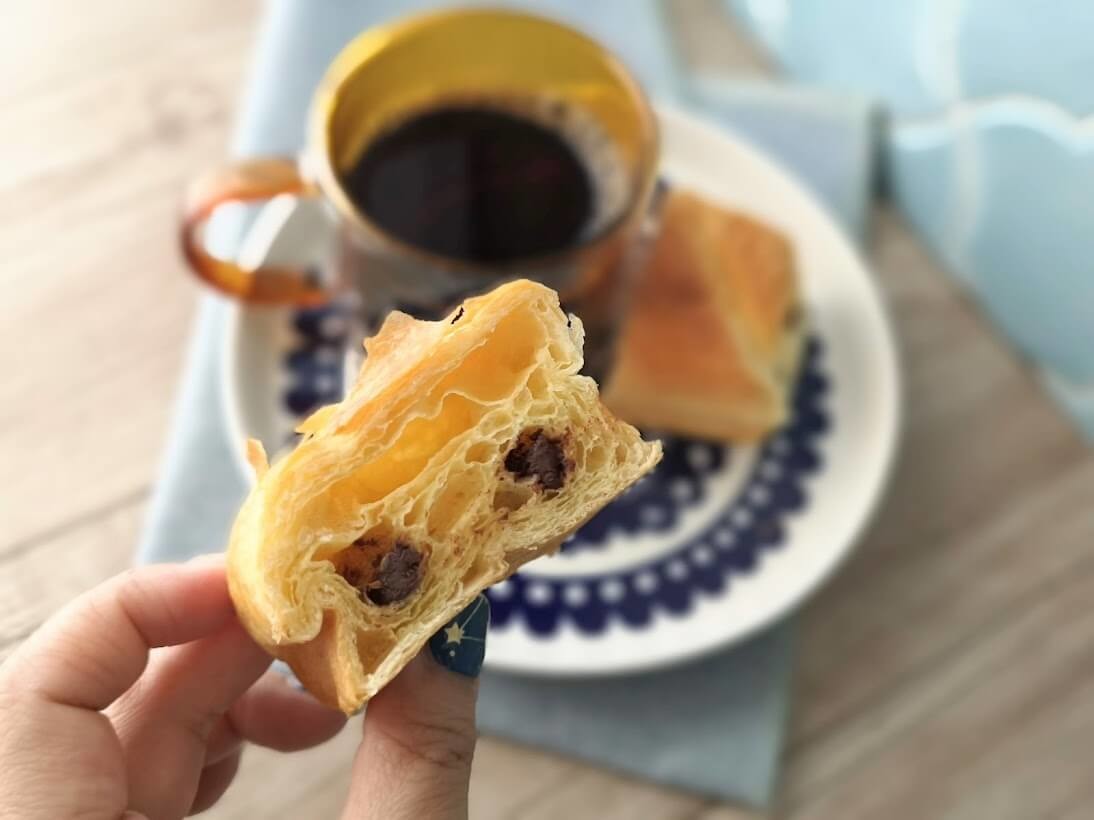 リベイクすると、表面のデニッシュ生地はさっくり、中の生地はしっとりと、そしてチョコレートが少し溶けてとりりとした食感を楽しむことが出来ますよ。