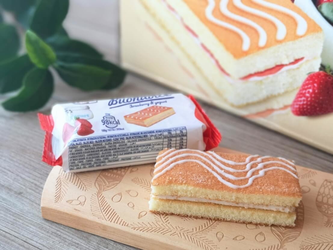 ストロベリーケーキはふわっと柔らかく、甘いスポンジでイチゴ味のクリームが挟まれた割とシンプルなお菓子です。