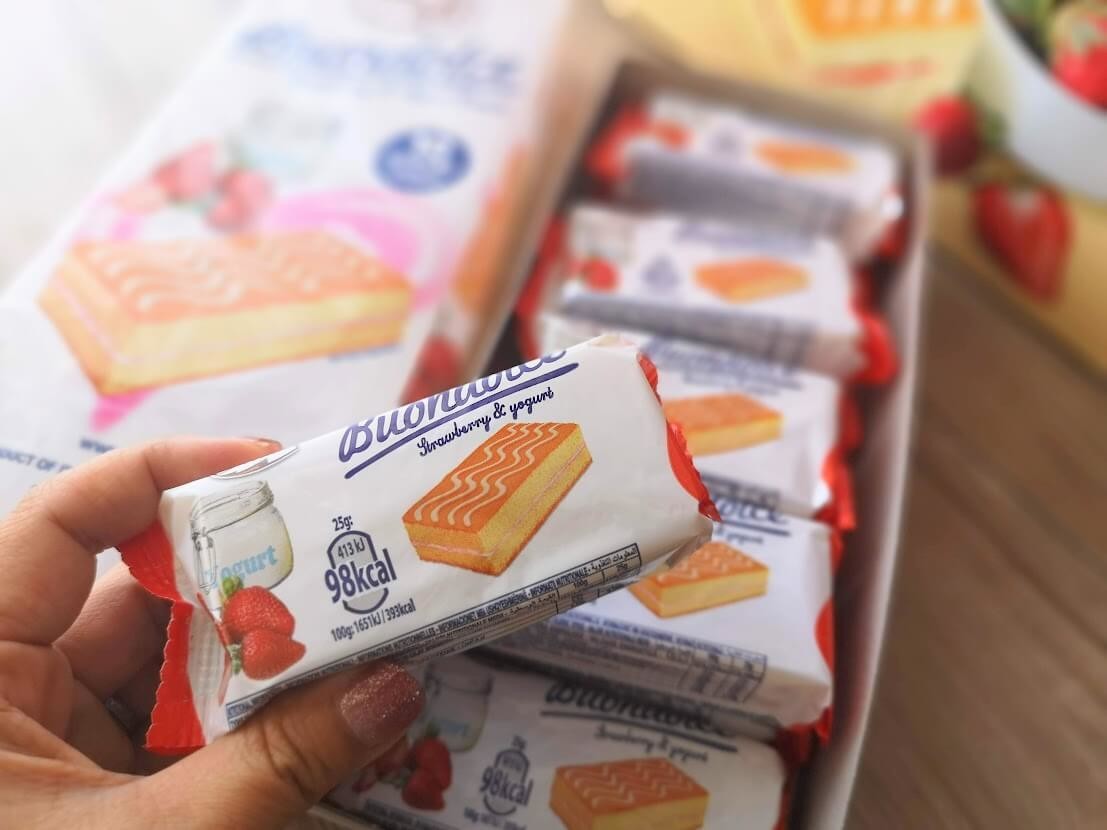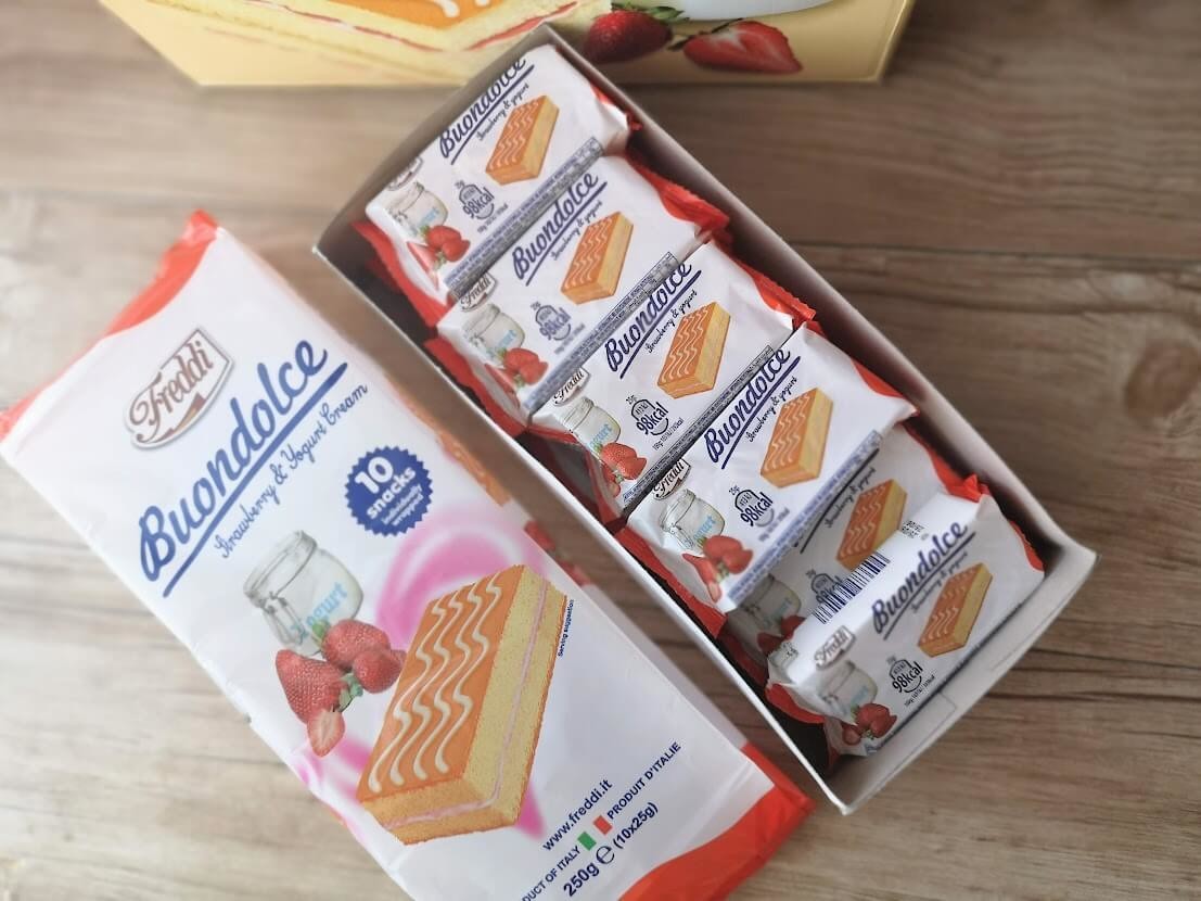 中のストロベリー&ヨーグルトクリームケーキは個包装の状態で10個入っています。
