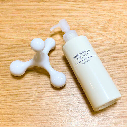 1つ目でご紹介した「3種の植物オイル ボディジェル 200ml ¥1,490(税込)」 と、「ほぐしテトラ ¥490(税込)」を併せて使うと、スベりも良くなり、あまり強すぎない力でツボや筋肉を刺激することができるので、とっても気持ち良いんです!
