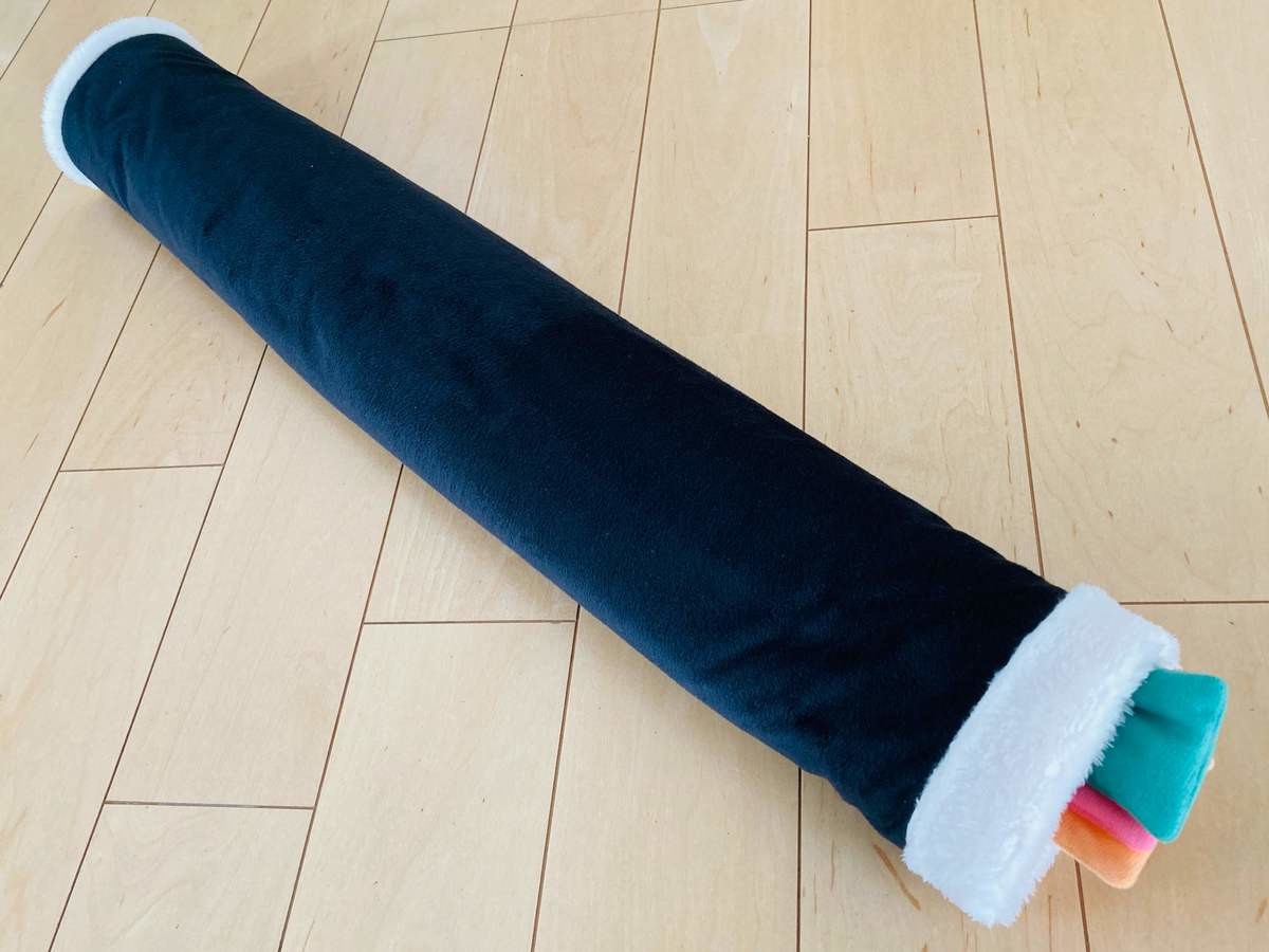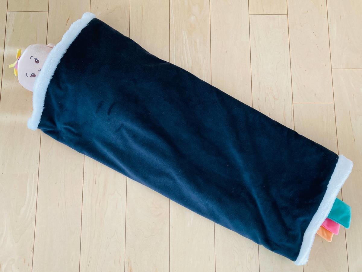 約35cmの赤ちゃん人形を入れてみました。おくるみとして使いながら具材をはさめば、恵方巻の完成です!ただし実際に乳幼児に使用する場合は、顔に布がかからないように使用してくださいね。