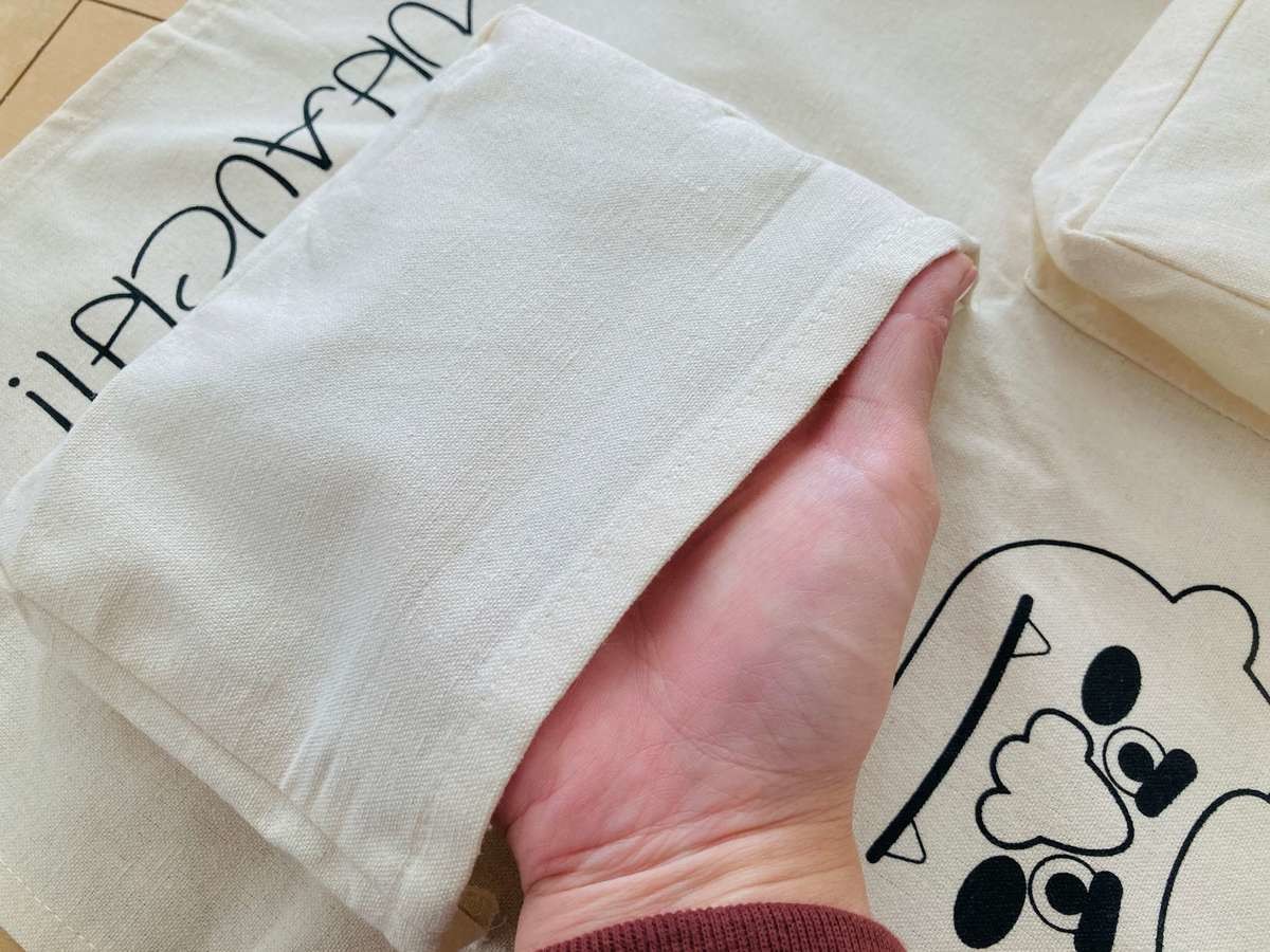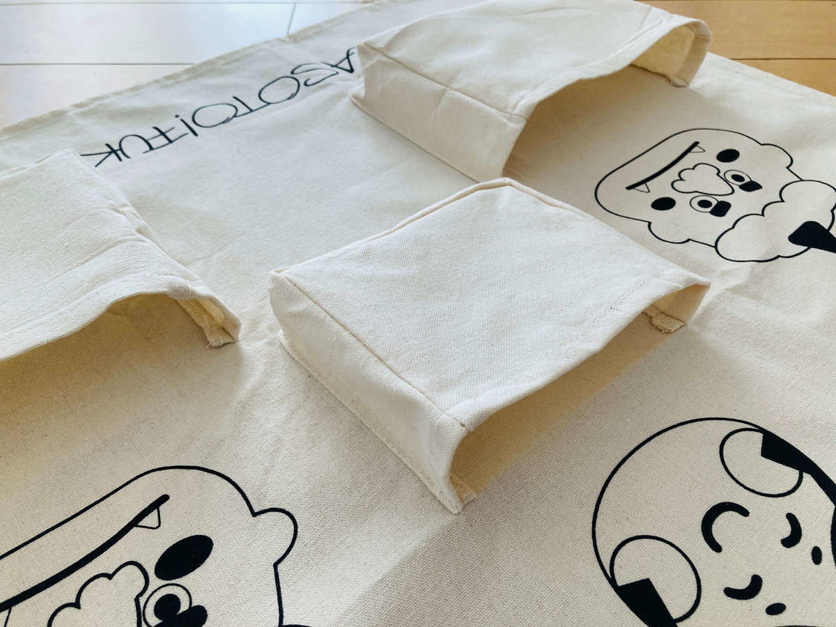 3つのポケットは広めのマチがあって、型崩れしにくい生地になっています。夢中で豆まきをしても安心ですね♪