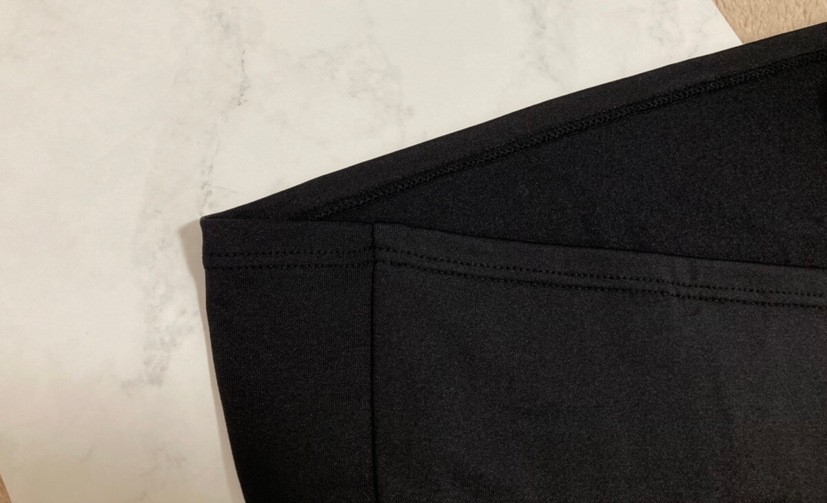 実際の素材感がこちら。かなり薄手でツルっとした触り心地ですが、実際に着用すると自然と暖かくなります。