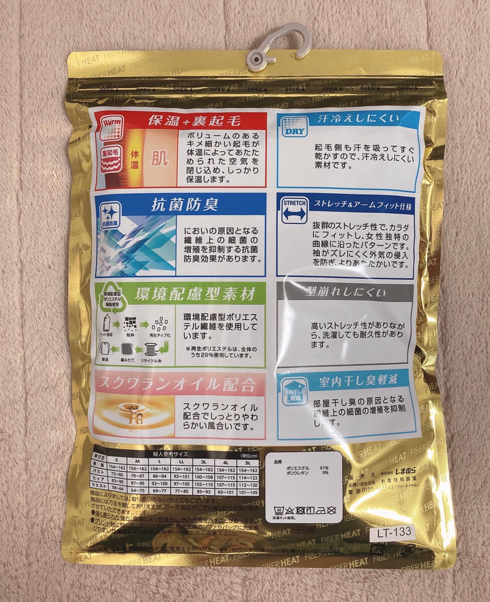 まずは「あったか裏起毛インナー(550円・税込)」をご紹介します。今回はMサイズを購入しました。