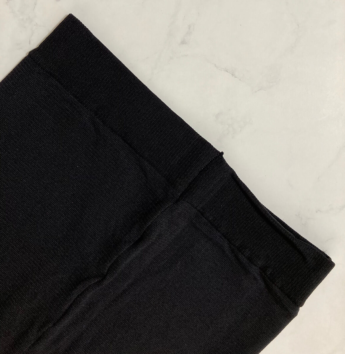 こちらも比較的厚めの110デニールを購入したため、透け感はありません。オフィスカジュアルや制服にも合わせやすいタイツです。