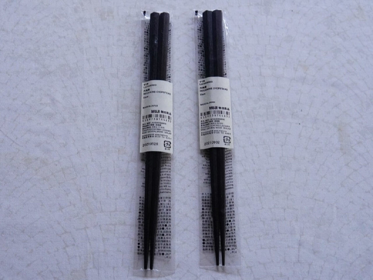 無印良品には色々なお箸がありますが、私が選んだのは六角で転がりにくく安定感のある箸。