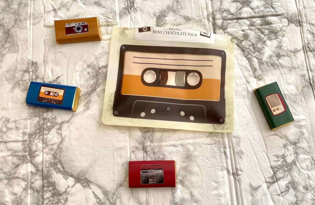 こちらは、ただのカセットテープではありません。ミニパックの中には、小さなミルクチョコレートが4個入っています。