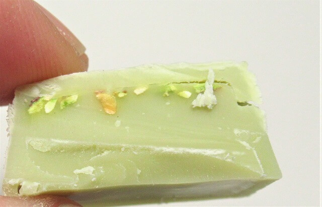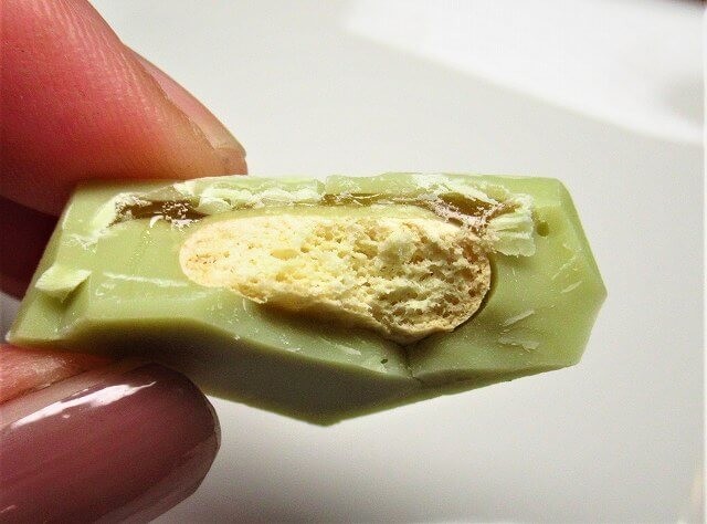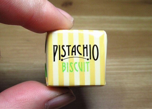 外側のチョコは甘すぎず、ピスタチオの風味もしっかりと感じます。ビスケットが入っているので、お子さんも好きな味ではないでしょうか。