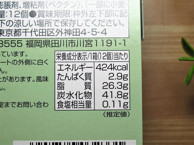1箱(12個)全部食べたときのカロリーは424㎉と高くなりますので、食べすぎにはご注意ください。