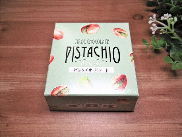 ビッグチロル<ピスタチオアソート>の箱の色は、グリーンとホワイトの2種類ありますが、今回はピスタチオ色のグリーンをチョイスしました。