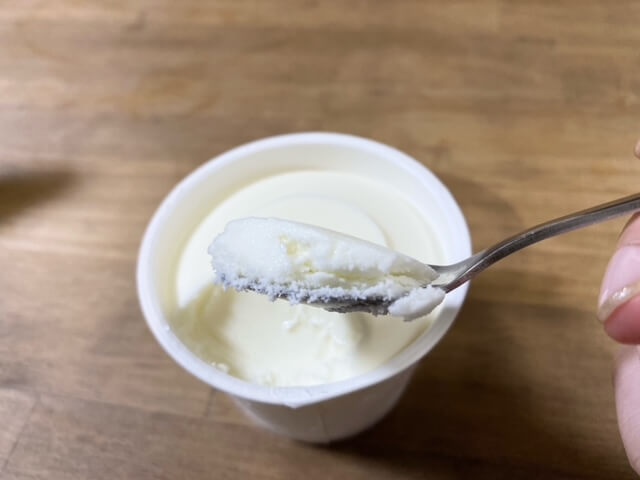 堅さも同じくらいで、カチカチではなくちょっとの力ですくえる程度です。食べる前に香りを嗅いでみたら、アイスではなくチーズの香りが……!