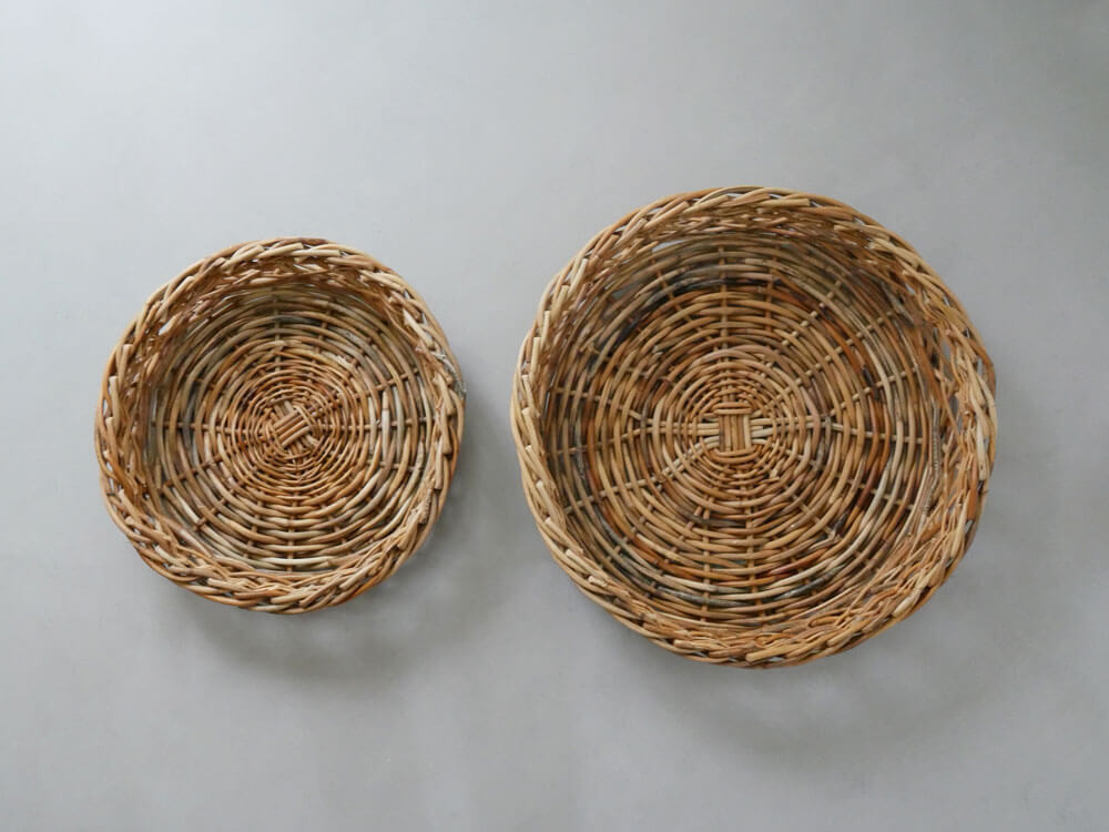 「バスケット」は2サイズからお選びいただけます。 Sは植物や小物、お菓子などを置くとナチュラルで可愛く、Lはクッションがまるまる入る大きさなので、ぜひセットでのご使用がオススメ。