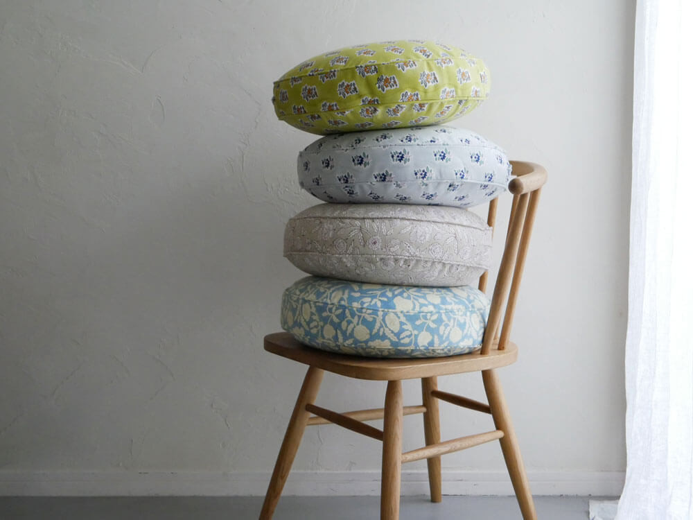 「クッション」は、ハンドメイドの風合いでほっこり癒されます。様々なインテリアスタイルと相性が良く、お部屋のアクセントに◎!