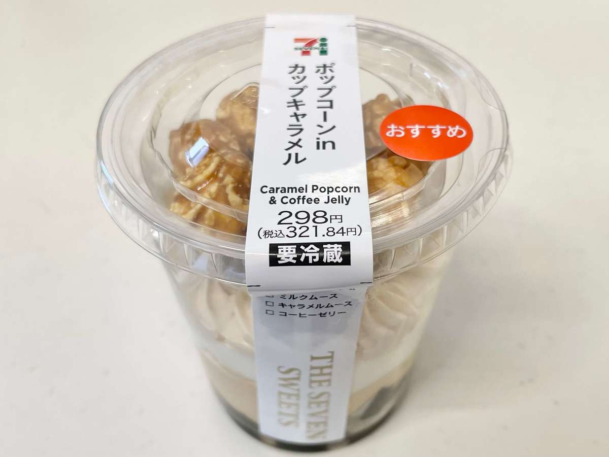 セブンイレブンのスイーツコーナーの上段に「ポップコーンインカップキャラメル」が並んでいました。