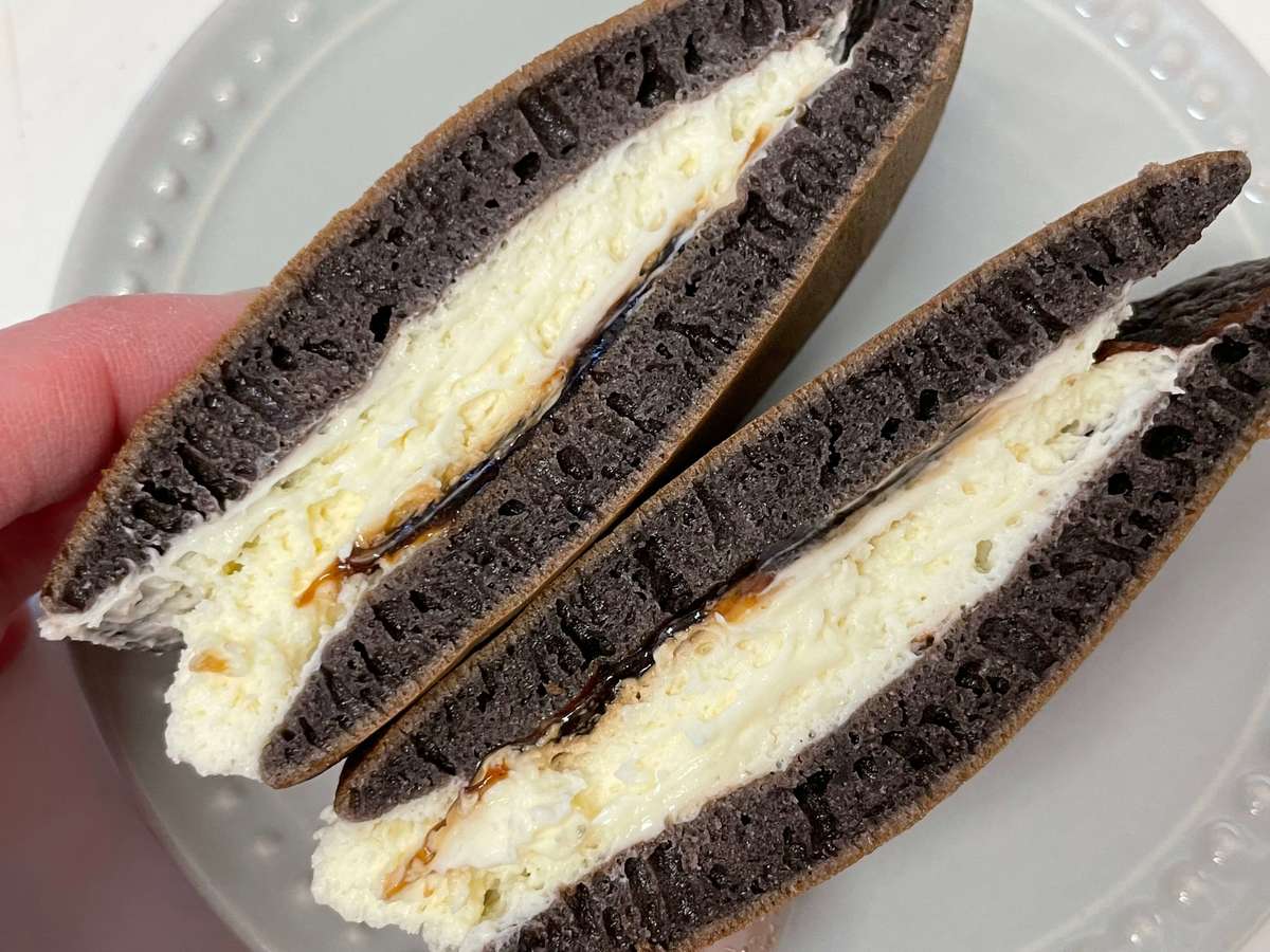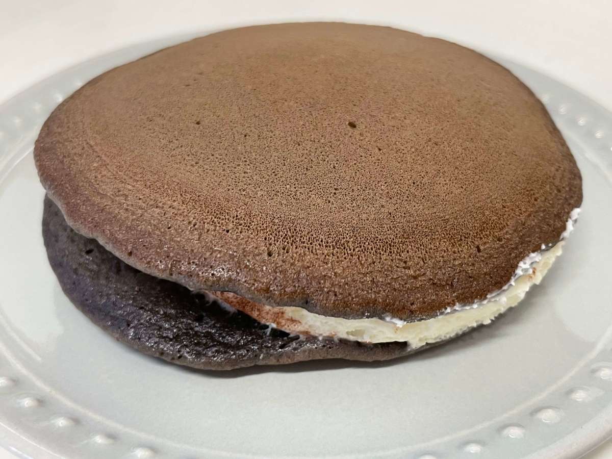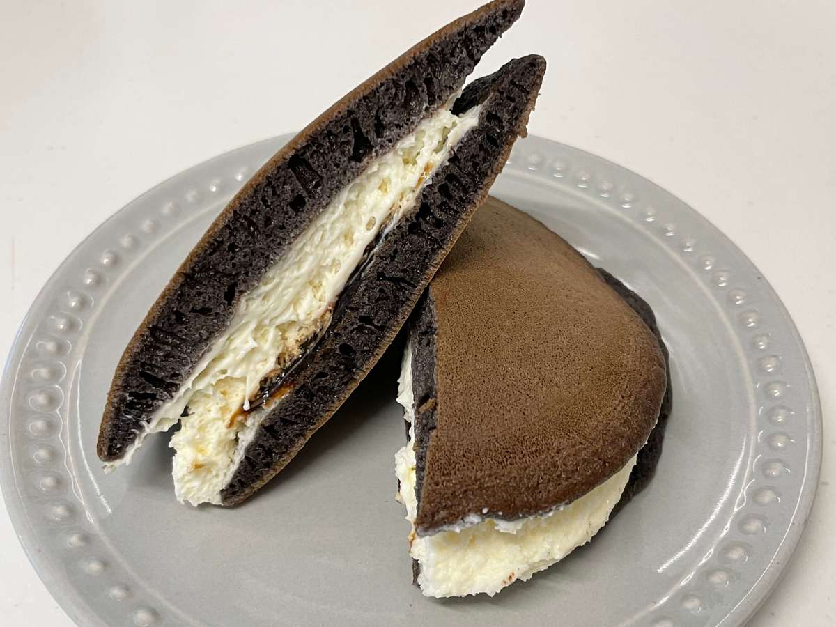もちもちとした食感のどら焼き生地に、チーズホイップクリームとコーヒージュレが挟まれています。
