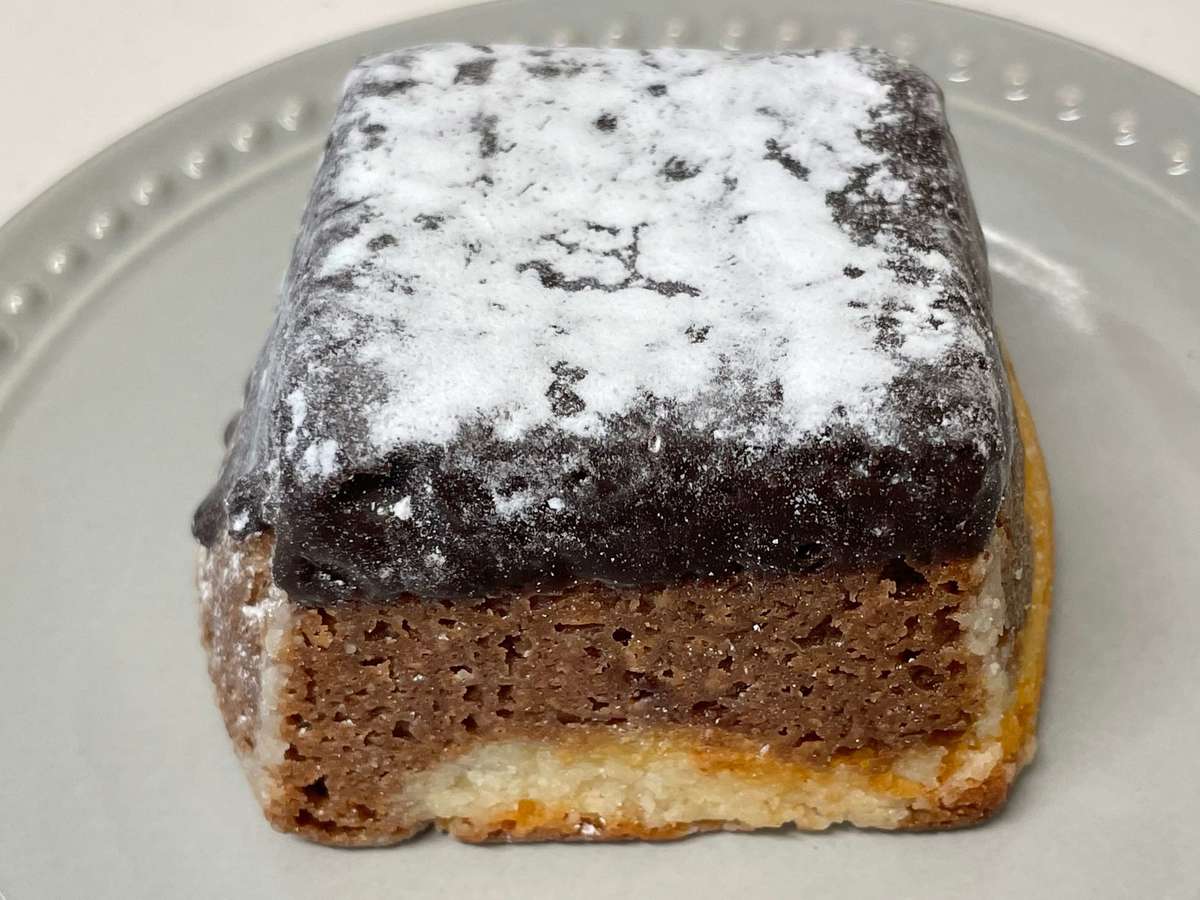 ほろ苦いコーヒー生地と濃厚なチーズ生地の、2層仕立てでティラミス風味の焼菓子だそう。