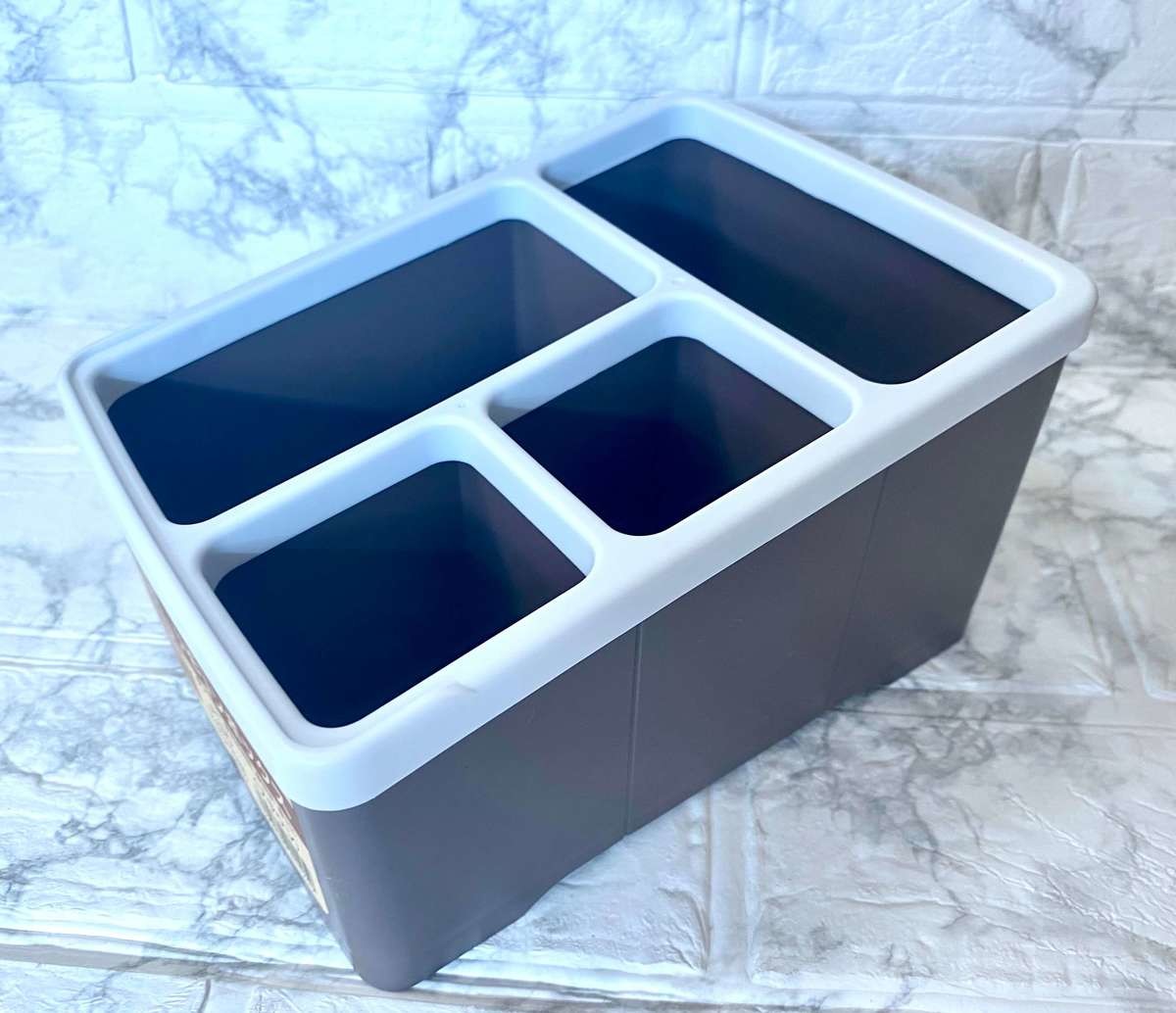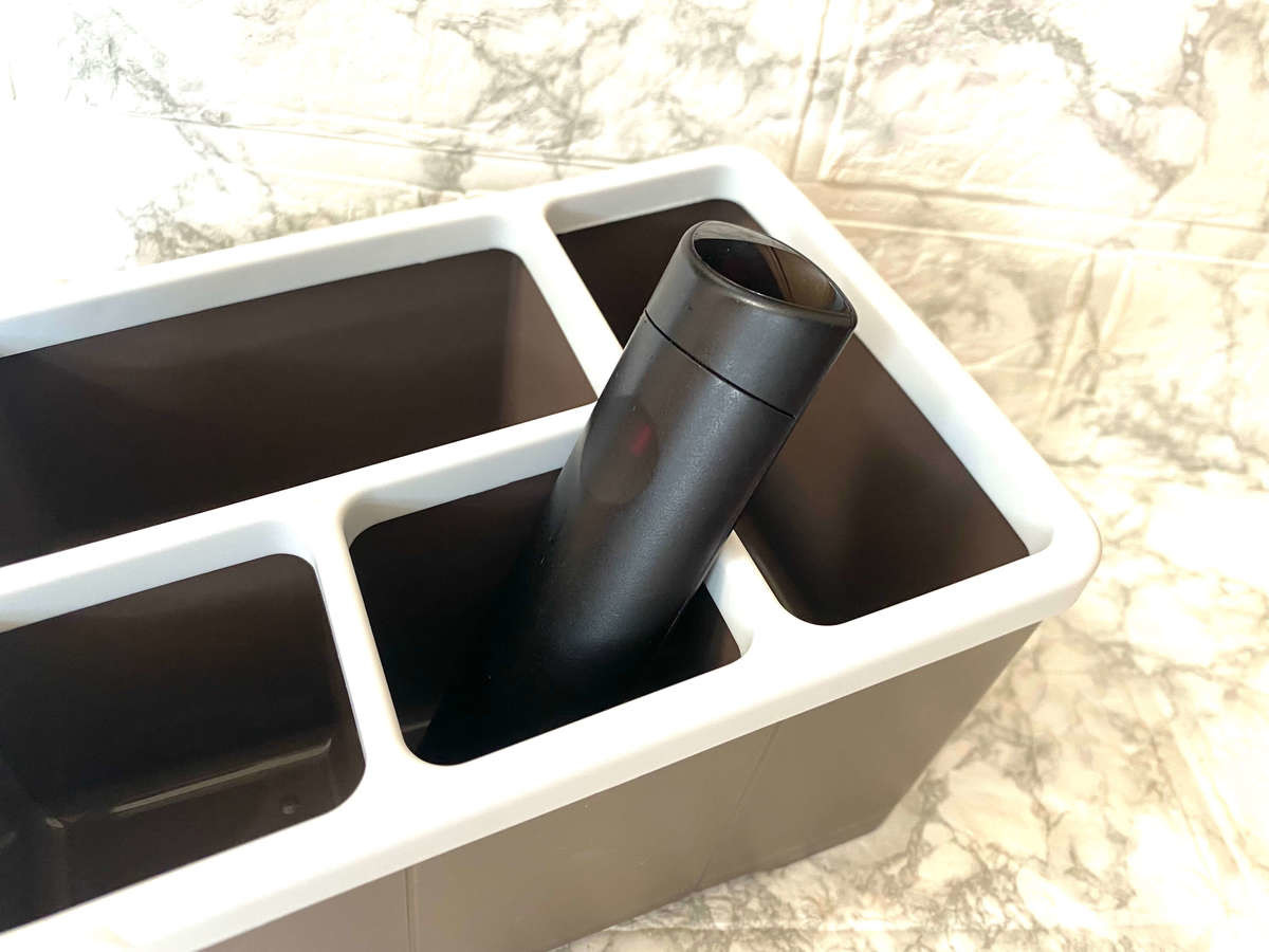 複数のリモコンを立てて収納できるだけでなく、ペンやハサミなどすぐ取り出したい生活の必需品をスッキリ保管できます。