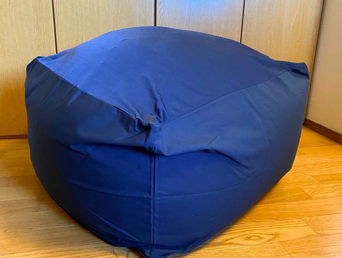 体にフィットするソファの大きさは、幅65×長さ65×マチ43cm。自宅に設置すると、かなり存在感があります。ソファがあって、テーブルがあって、その近くに体にフィットするソファを置いてしまうと、圧迫感を感じてしまうかも。
