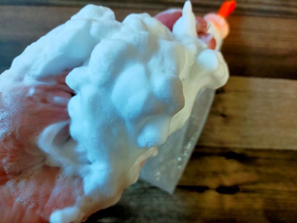 もっこもこで、しっかりと泡立ちました!この泡はかなり弾力のあるもっちりした泡で、顔を洗っている時にもヘタらず最後まで気持ちよく顔を洗うことができるんです。