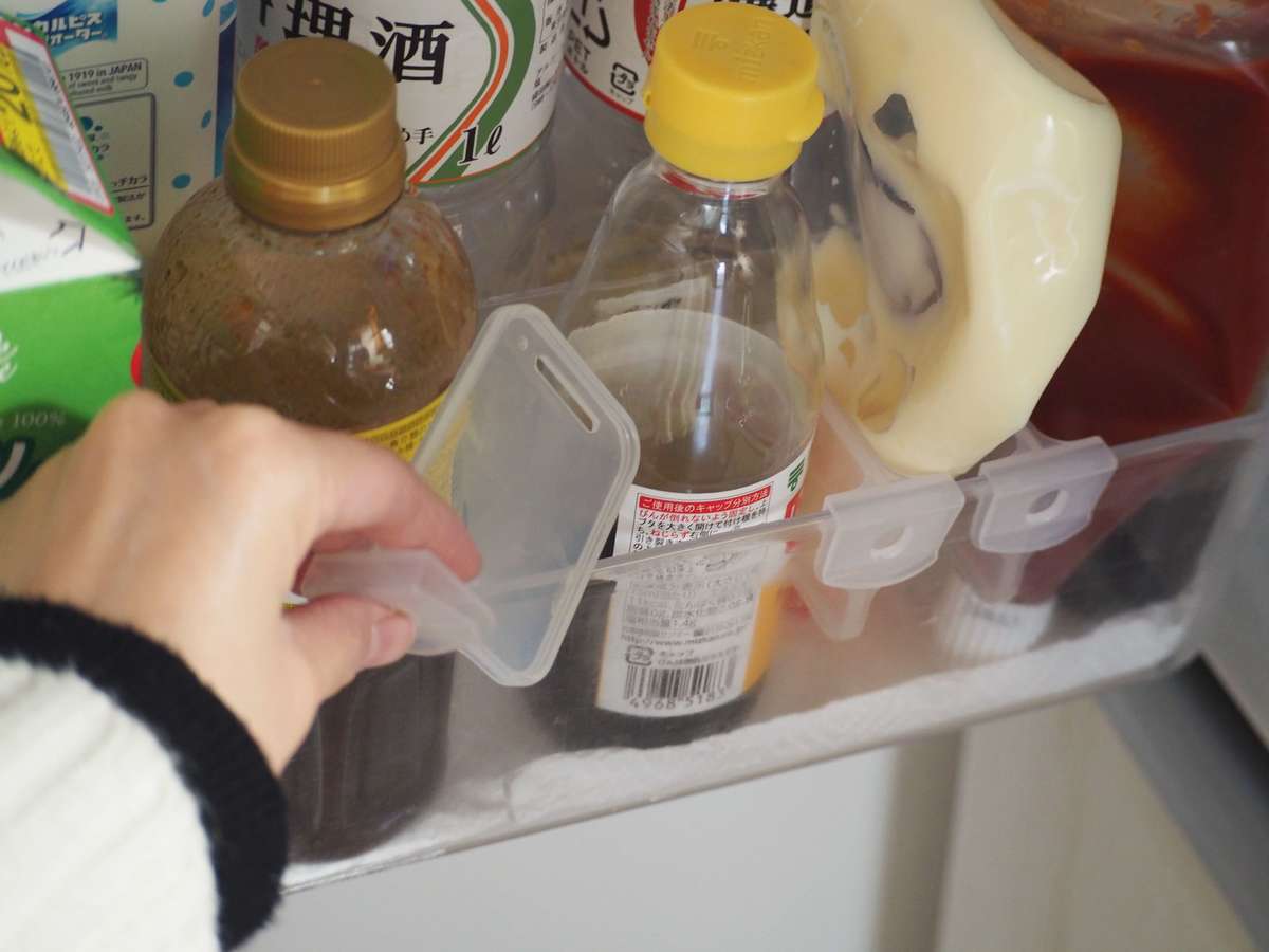 冷蔵庫の扉を開く度に倒れていた沢山の調味料(瓶)たち。それを解決してくれたのがこの仕切りです。この仕切りのお陰で、開ける度に倒れるプチストレスが、見事に解消されました!