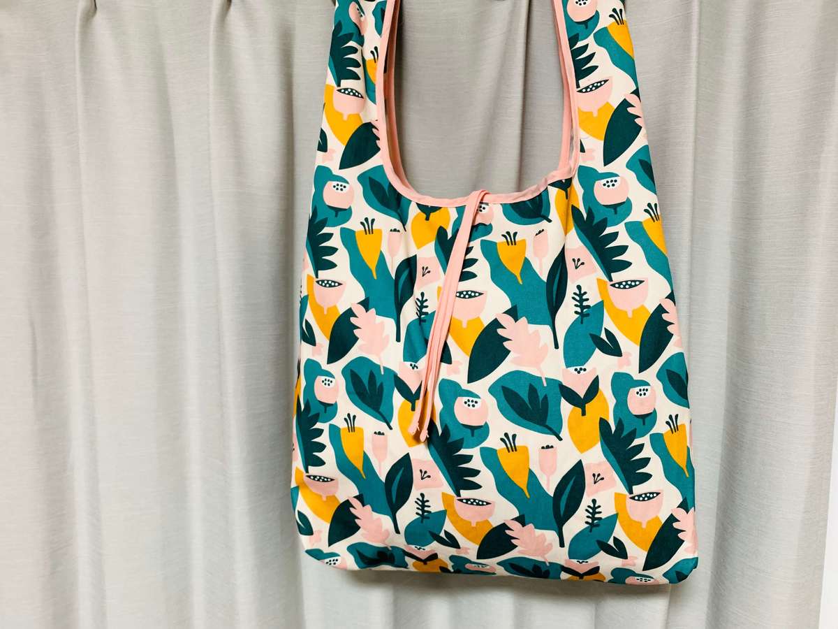 また、エコバッグを使わない時は、紐を使って折りたたんでおくことも可能。小さくすればバッグの中にだってすっぽり収まりますよ。