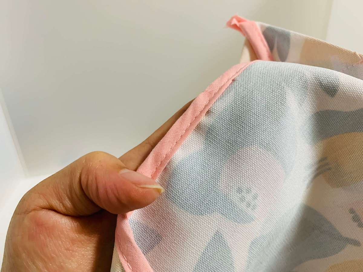 また、バッグの縁や裏面の細かい部分のパイピングまで丁寧に仕上げられています。ピンク色なので可愛らしさもプラスされていて◎!