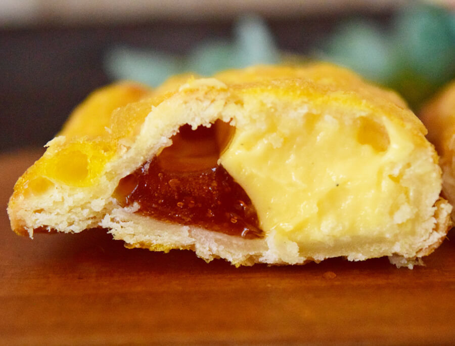カスタードクリームにはバニラビーンズも入ってますね。メープルシロップはカスタードクリームよりも気持ち少なめ。