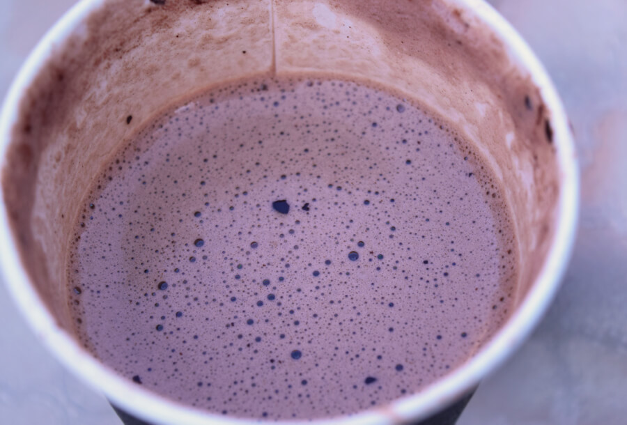 ぐるぐるとかき混ぜてみると、あっという間にシェイブチョコが溶けてなくなってしまいました。
