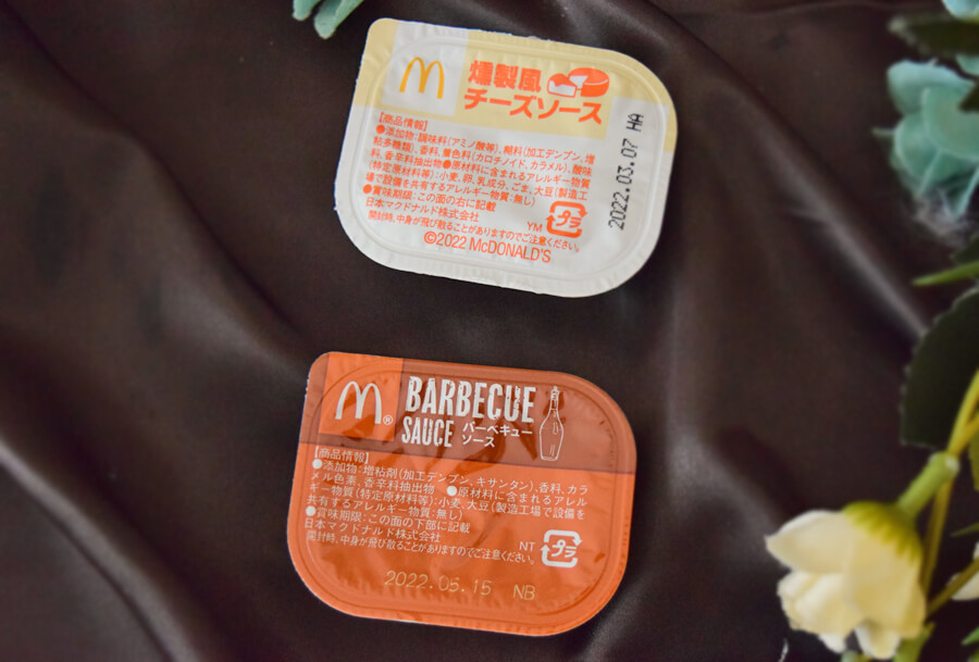 今回、私は「燻製風チーズソース」と「バーベキューソース」を付けてもらいました。※ソースの取り扱いについては店舗により対応が異なりますので要確認