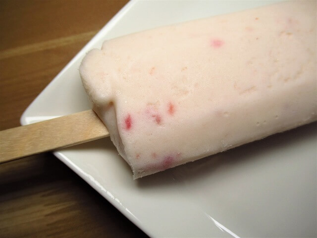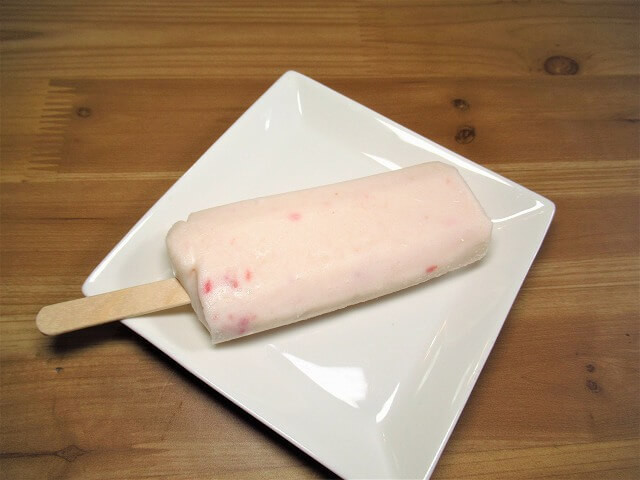 八ヶ岳契約牧場しぼりたて牛乳バーいちごのお味は、フレッシュないちごに牛乳をかけただけの「苺ミルク」みたいです! シンプルでおいしい。