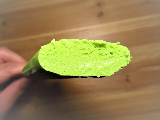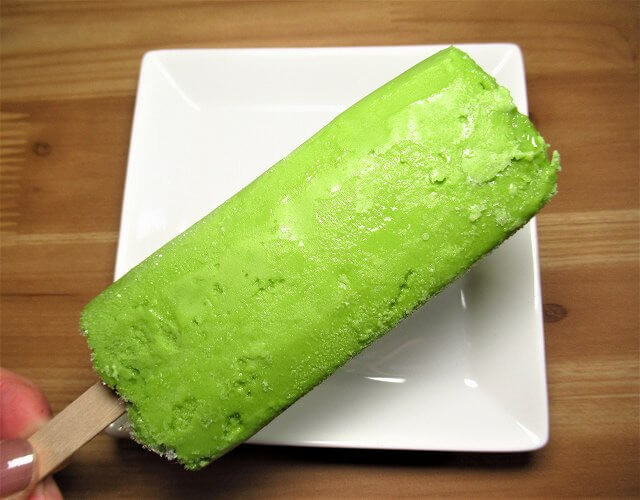 続いて「八ヶ岳契約牧場しぼりたて牛乳バー宇治抹茶」は、映えるようなきれいなグリーンのミルク抹茶アイスバー。
