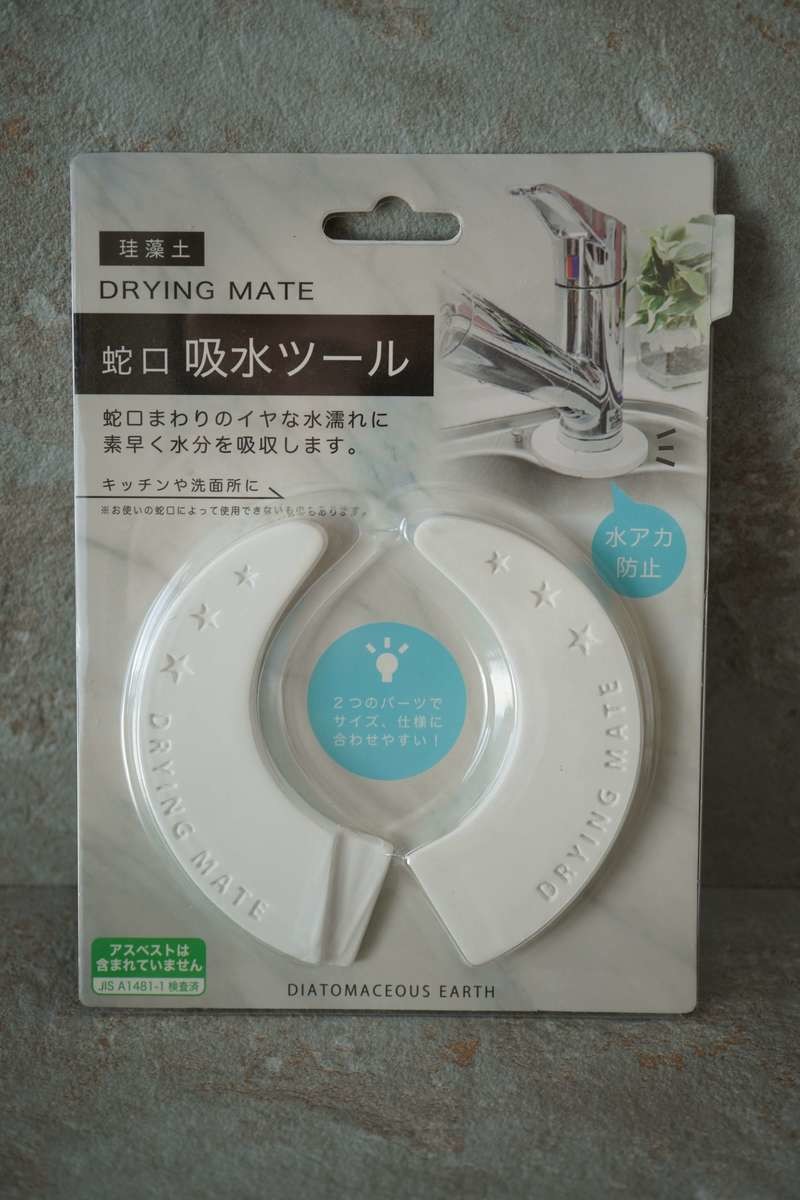 こちらはキッチンや洗面所の蛇口周りに置いて水分を吸収するための珪藻土グッズです。 珪藻土が水を吸うことで拭く手間が簡単になり、水垢の防止にもなります。