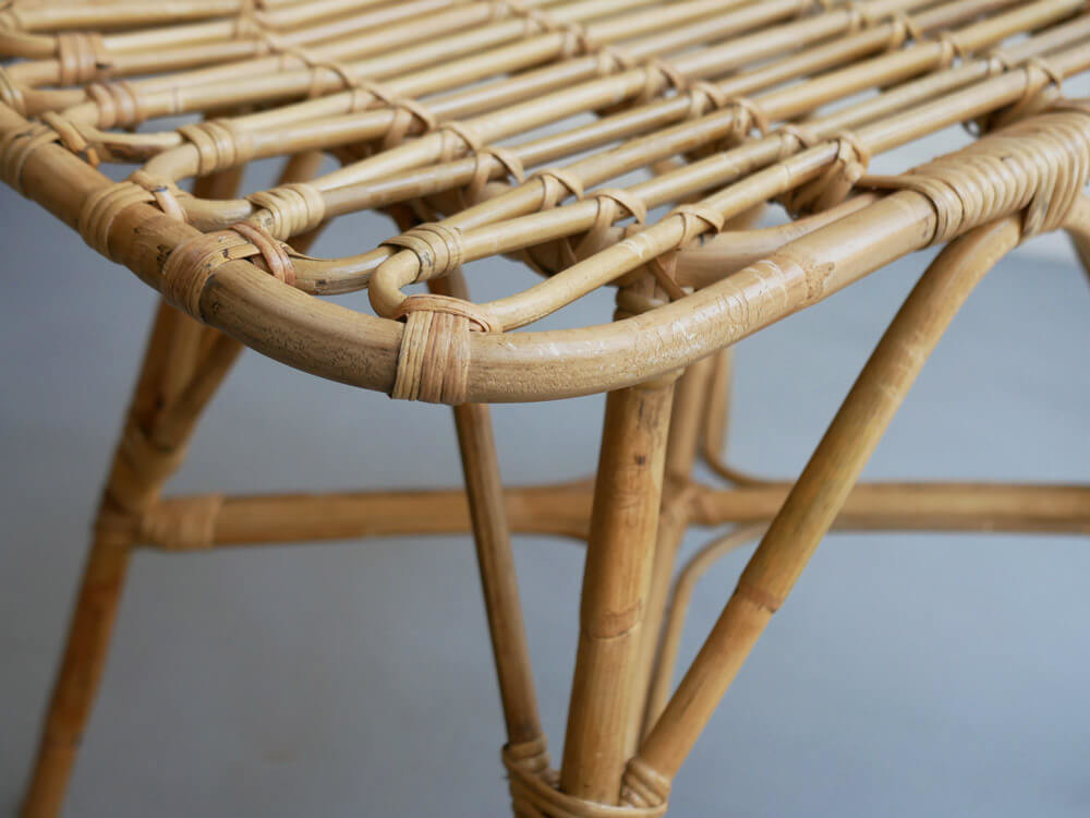 素材は、全て天然の皮つきラタン。 軽く柔らかいのに丈夫なのが特徴。その特徴を生かし、立体的でなめらかなインテリア作りを可能とする植物です。