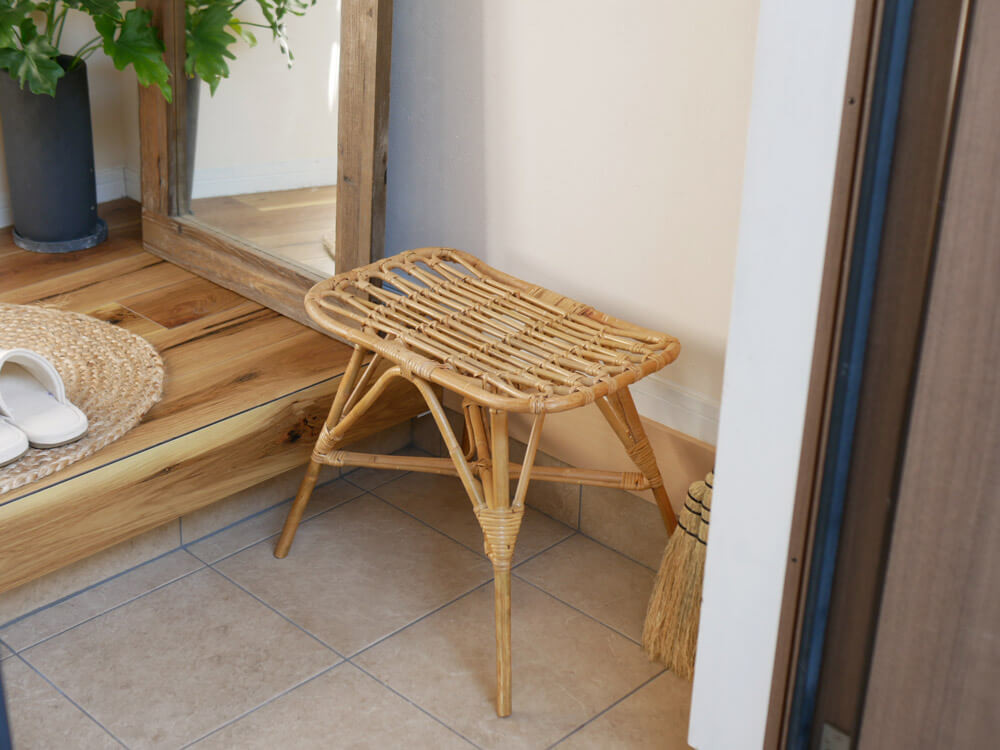 小空間の玄関に置くだけで、このラタンの編み込みで華やかさがUP。 そして若干のヴィンテージ感あるデザインも雰囲気があって推しポイントです。
