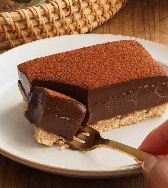 ブラックの板チョコとチョコ味のアイスクリームで濃厚なテリーヌに。アイスクリームを使えば、少ない材料で本格的な仕上がりに。しっとり食感の絶品スイーツです。