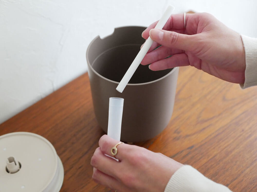 交換方法は、加湿ユニットからホルダーを引き抜き、吸水スティックを交換し差し戻すだけ。