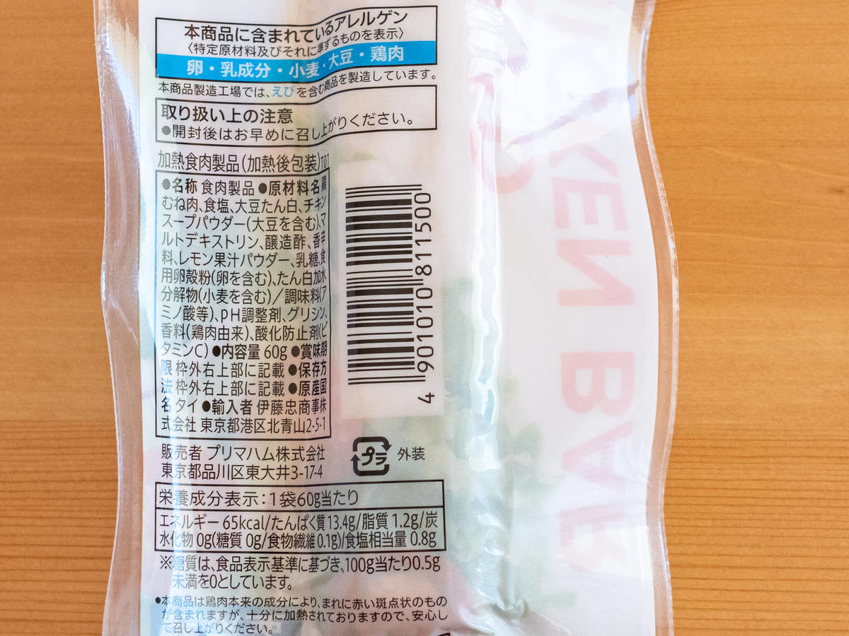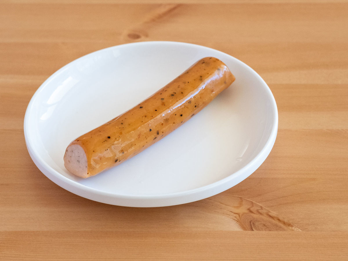 ぱっと見は魚肉ソーセージのようですが、ちゃんと鶏胸肉を使用したサラダチキンなんです!
