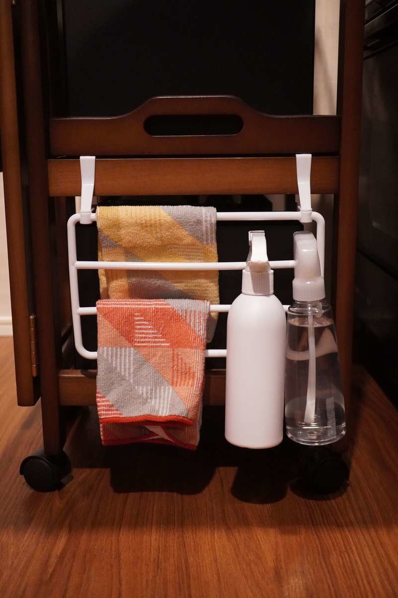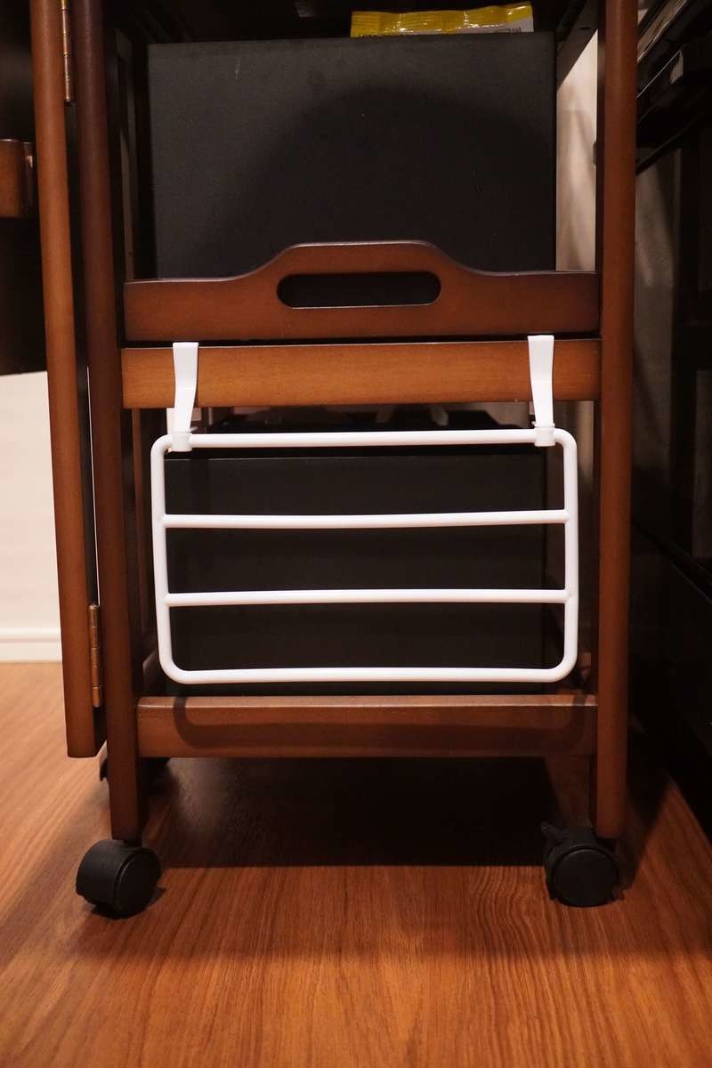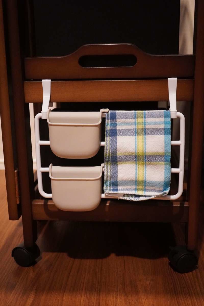 こちらはキッチンワゴンの側面に取り付けてみました。