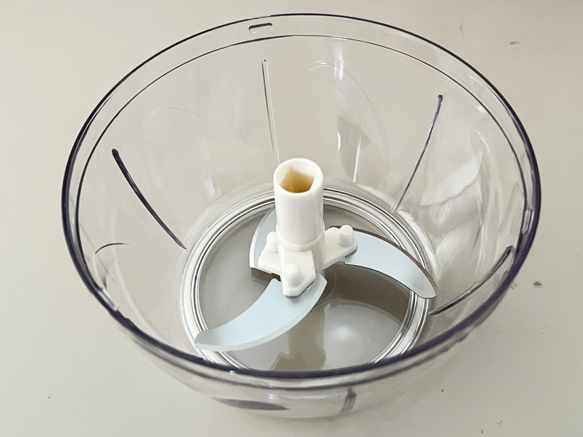 ちょっと気になったのは、20回転の段階では、やはり電動カッターと同じだけの細かいみじん切りはできなかった点です。コンパクトサイズな分カッターの大きさも小さめなので、カットできる大きさには限界があるかもしれせん。