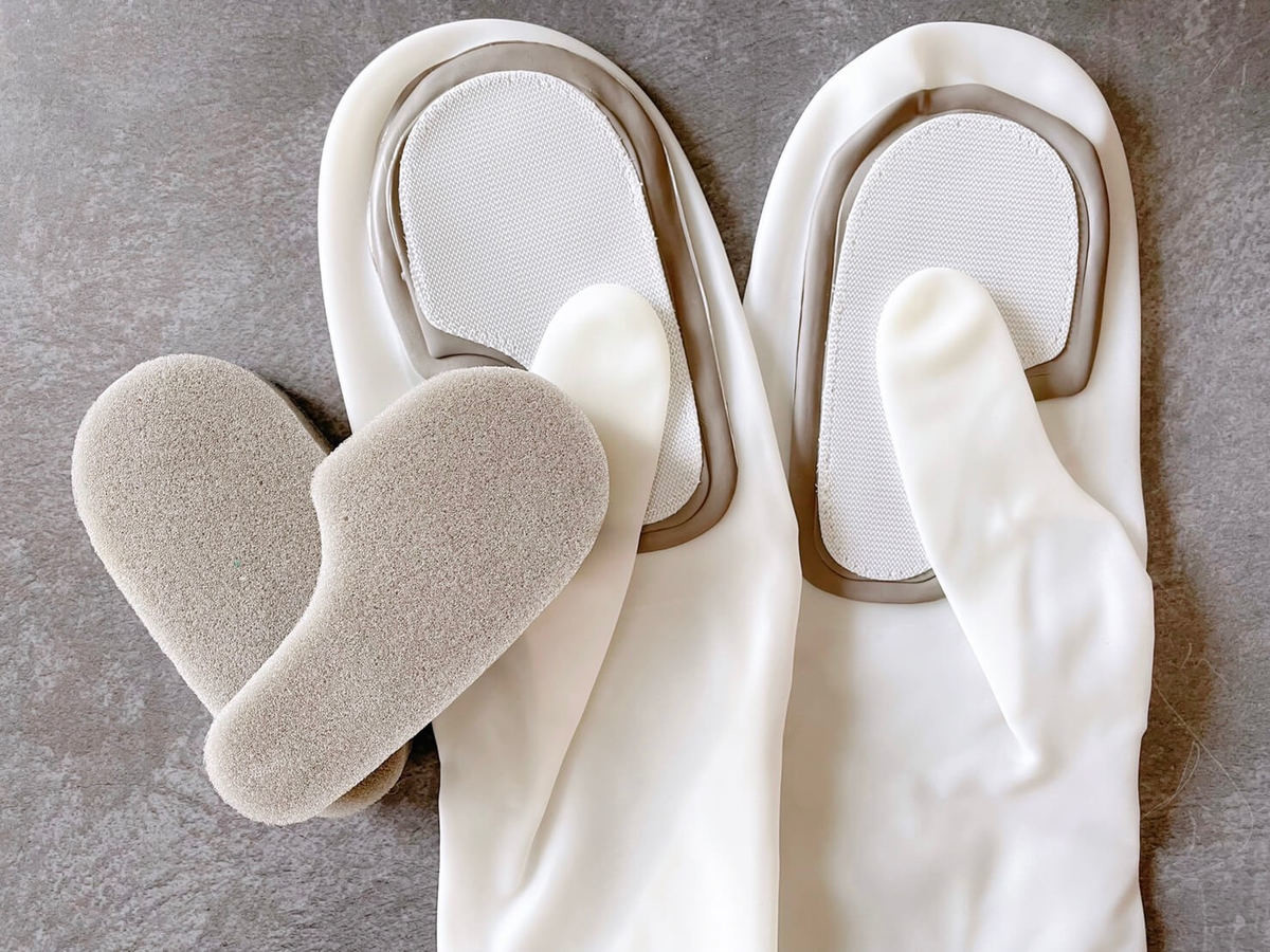 使い終わったら手袋からスポンジを外してゆすいだり干したりできて、衛生的。食器洗い用、お風呂掃除用、靴洗い用などいくつか持っておくと便利です。