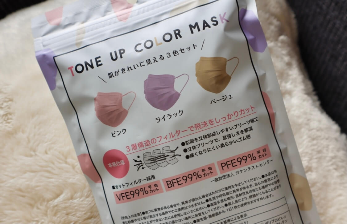 通常の白マスクよりトーンアップマスクの方がパッと華やかな印象になり、マスク生活の気分も上げてくれるはずですよ♪